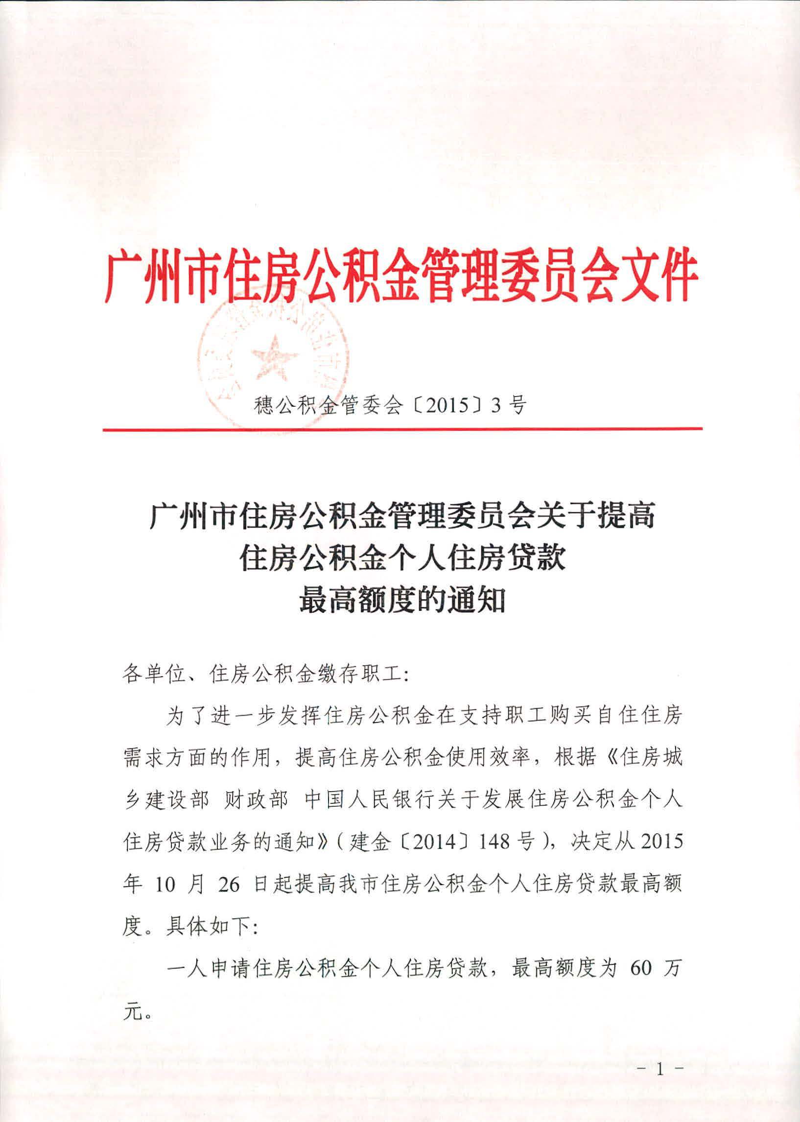 广州市住房公积金管理委员会关于提高住房公积金个人住房贷款最高额度的通知